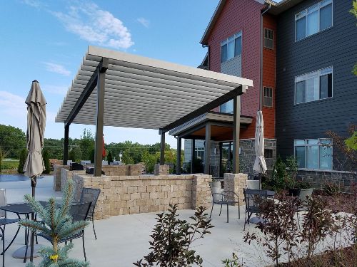 The Pointe Patio features BBQ grilling stations, fire pit, basketball hoop and Pickleball court.